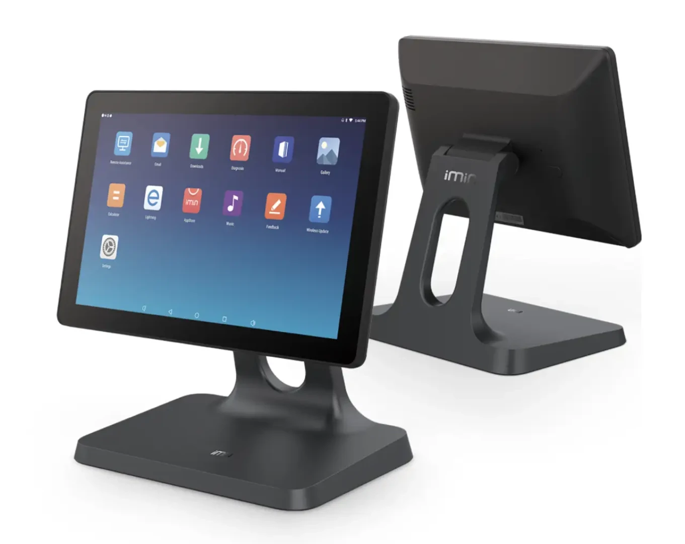 Az iMin D2 POS kijelző a legjobb választás az olyan vendéglátó- és kiskereskedelmi helyeknek, melyek egy megbízható és elegáns, kisebb helyigényű eszközt keresnek. Karcsú kialakításával tökéletesen illeszkedik a pultra, mindemellett ellátja egy nagyobb készülék összes funkcióját is. Masszív szürke-alumínium ötvözet alapja stabilitást és tartósságot biztosít. A többszögű forgatható csuklópánt lehetővé teszi a képernyő akár 105 fokos függőleges megdöntését is. Az állvány átgondolt hátsó kábelkivezetésének köszönhetően rendezett munkafelületet biztosít.